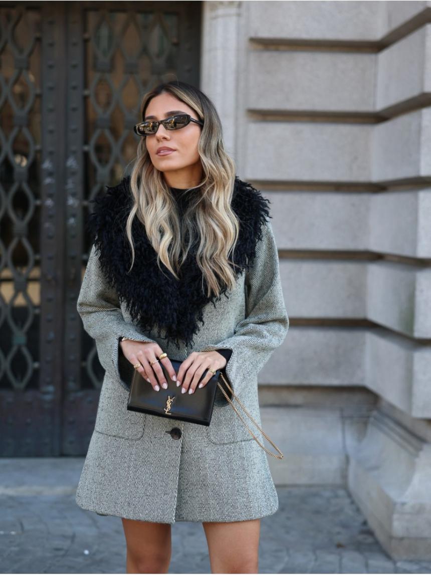 Abrigo corto con aberturas con solapa y cuello pelo desmontable