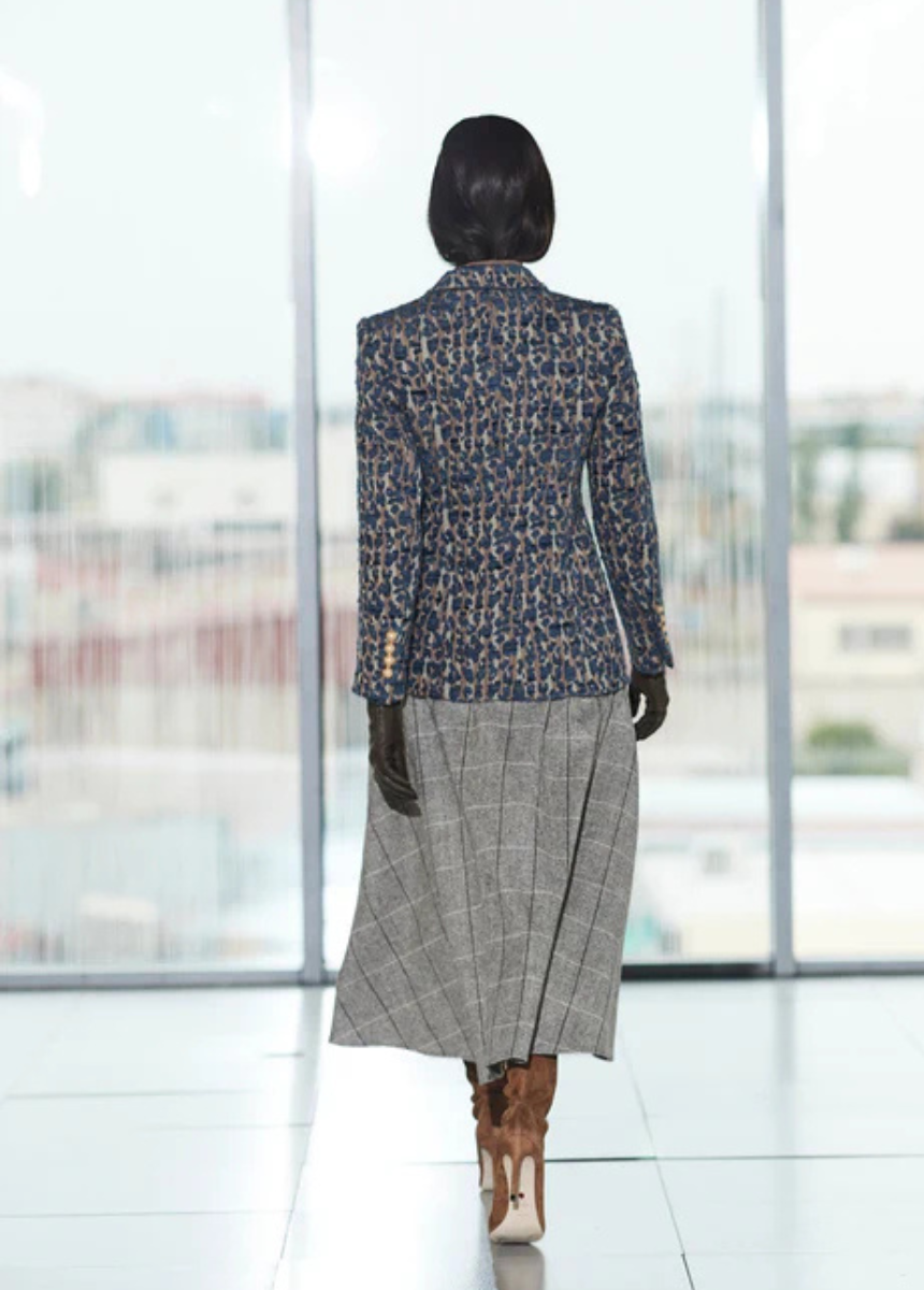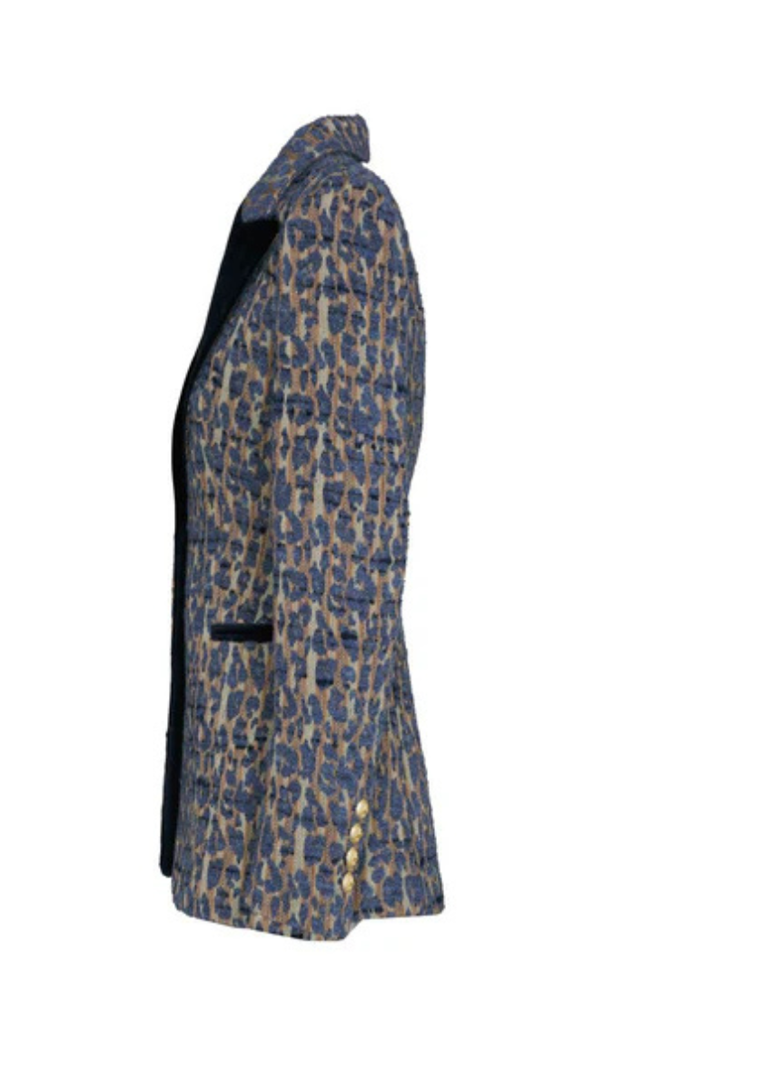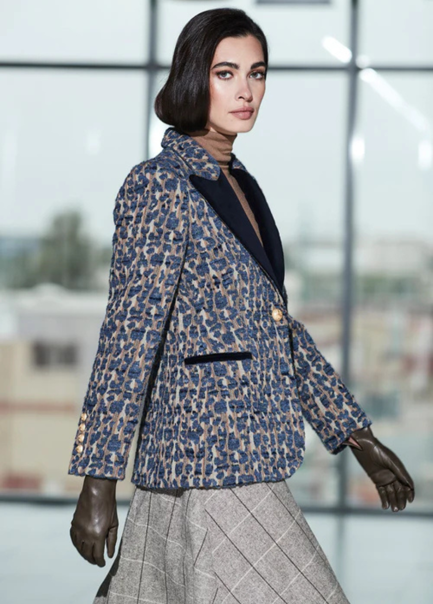 La BLAZER SAINT PATRICK es una oda a la sofisticación más audaz, donde el arte del tejido se convierte en una declaración de estilo inconfundible. Confeccionada con un jacquard premium de vibrante "print", esta blazer jacquard print evoca la riqueza de los patrones clásicos con un toque de modernidad. Su distintiva solapa de pico en terciopelo y los bolsillos con vivo realzan la silueta, añadiendo una profundidad textural y visual única. Cada detalle es un testimonio de lujo: los botones dorados en los puños y al frente, elaborados en polímero de alta calidad con brillo y nuestro logo.