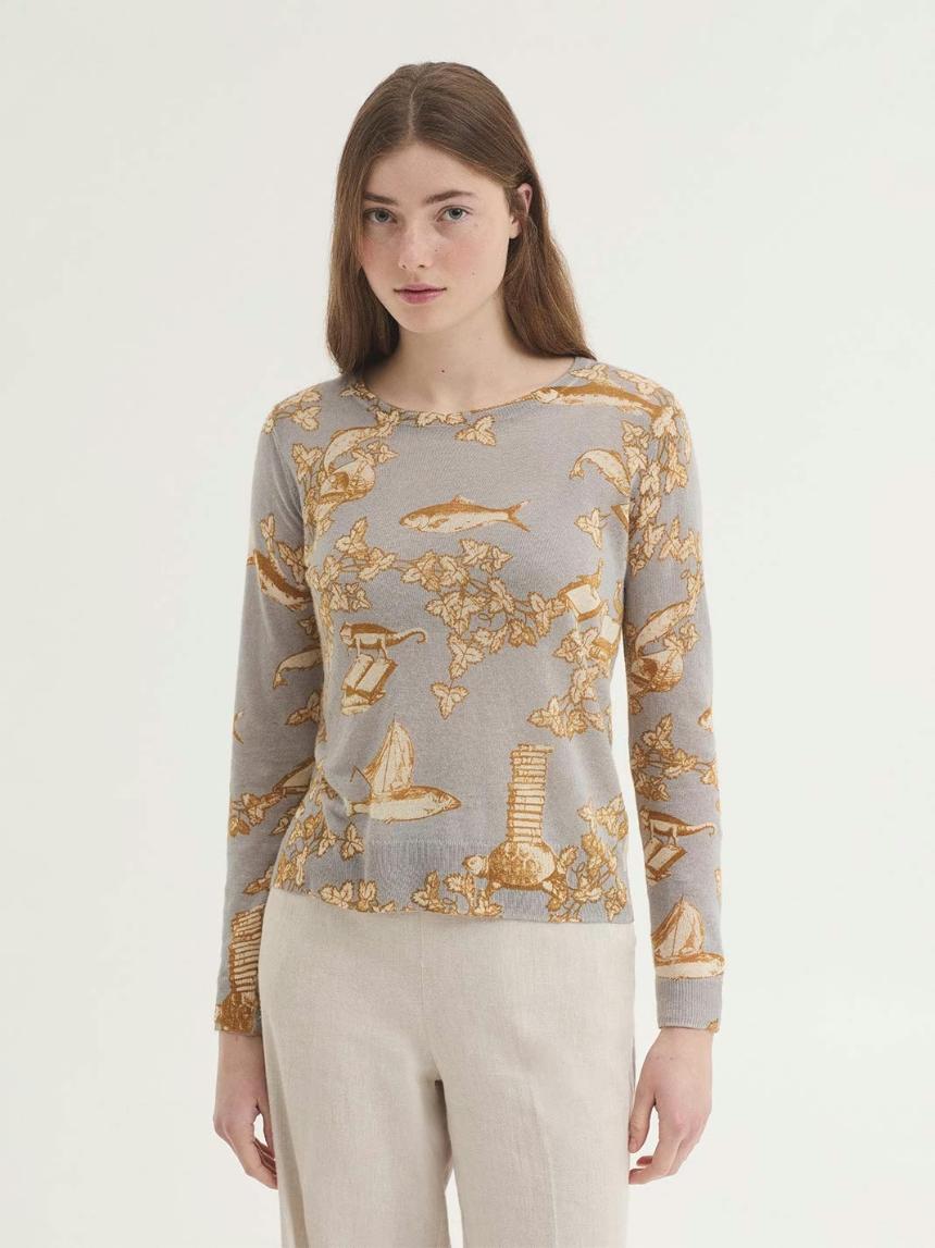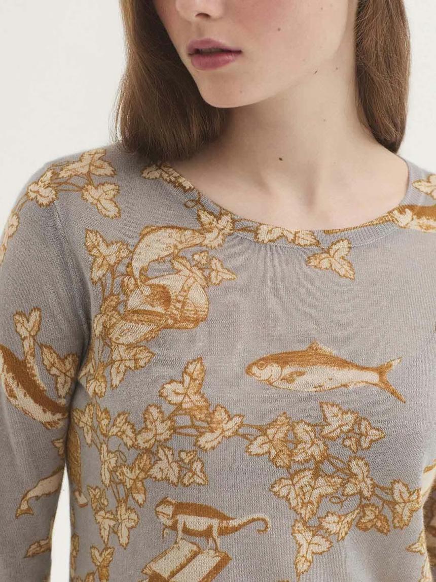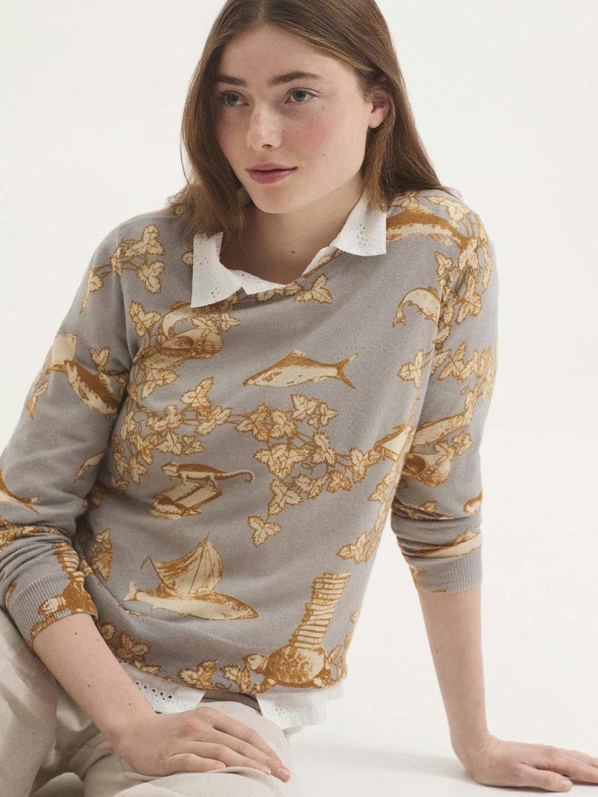 Jersey básico estampado Midsummer Books. Escote redondo, manga larga y acabados en rib.