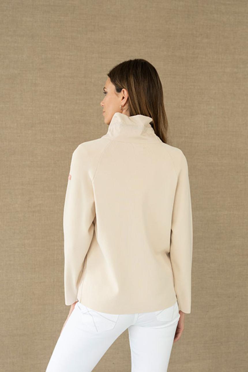 Ligera, versátil y con un juego de texturas que marca la diferencia. Esta parka en tono beige aporta un aire suave y luminoso al look. Su silueta recta y el largo a la cadera la convierten en una prenda cómoda y fácil de integrar en el día a día, ideal para completar estilismos casuales con un punto más cuidado. El diseño combina el delantero en tejido tipo parka, con acolchado ligero, y las mangas y la parte trasera en punto, creando un contraste sutil entre estructura y confort. El cuello alto con cierre de botones aporta protección y un acabado limpio, mientras que los bolsillos frontales con solapa suman funcionalidad. Las aberturas en los costados aportan mayor comodidad al movimiento y un acabado más ligero al conjunto. Una prenda pensada para quienes buscan ligereza sin renunciar al detalle. Detalles que importan: Parka de silueta recta Largo a la cadera aprox. Delantero en tejido tipo parka acolchado Mangas y espalda en punto Cuello alto con cierre frontal de botones Bolsillos frontales con solapa Aberturas en los costados Diseño combinado de texturas