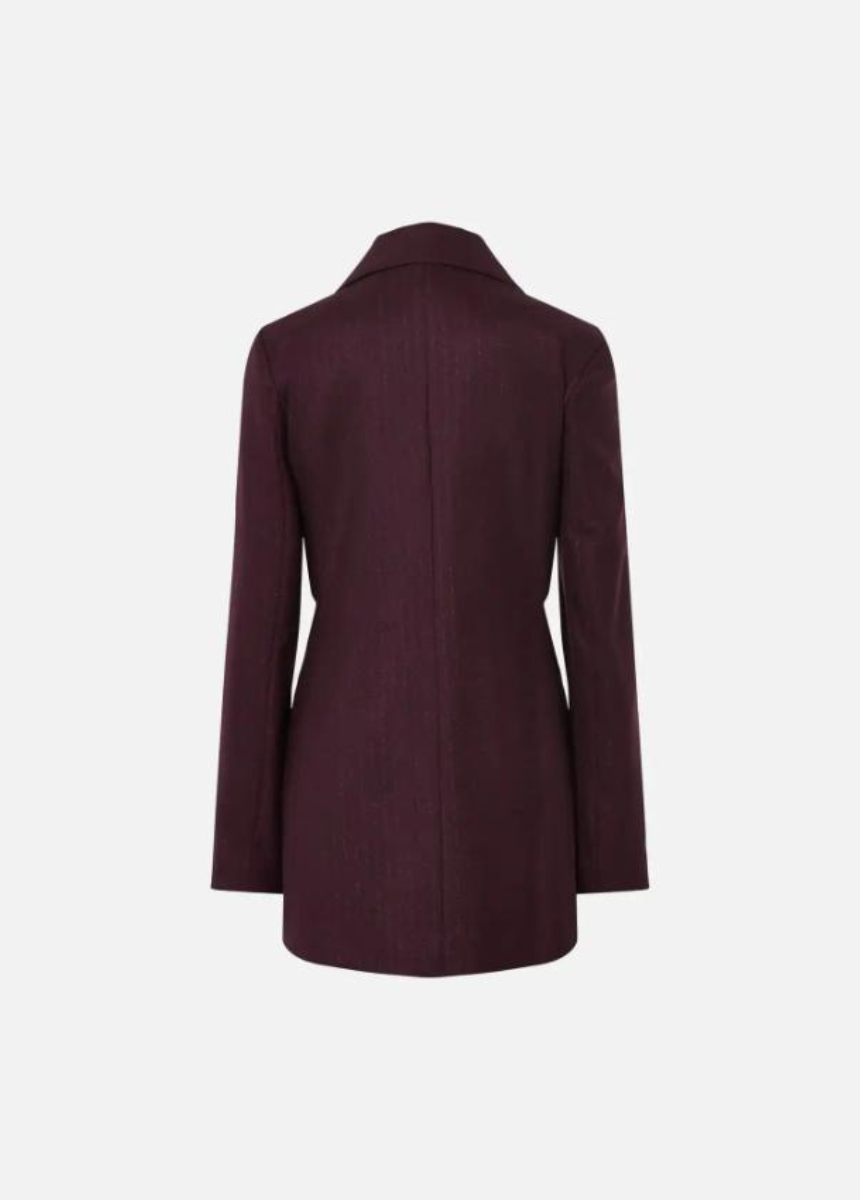 Blazer marrón de corte recta y cruzada con dos botones principales.Tiene solapas anchas, bolsillos con ntapeta en la parte delantera y un forro interior estampado de leopardo.